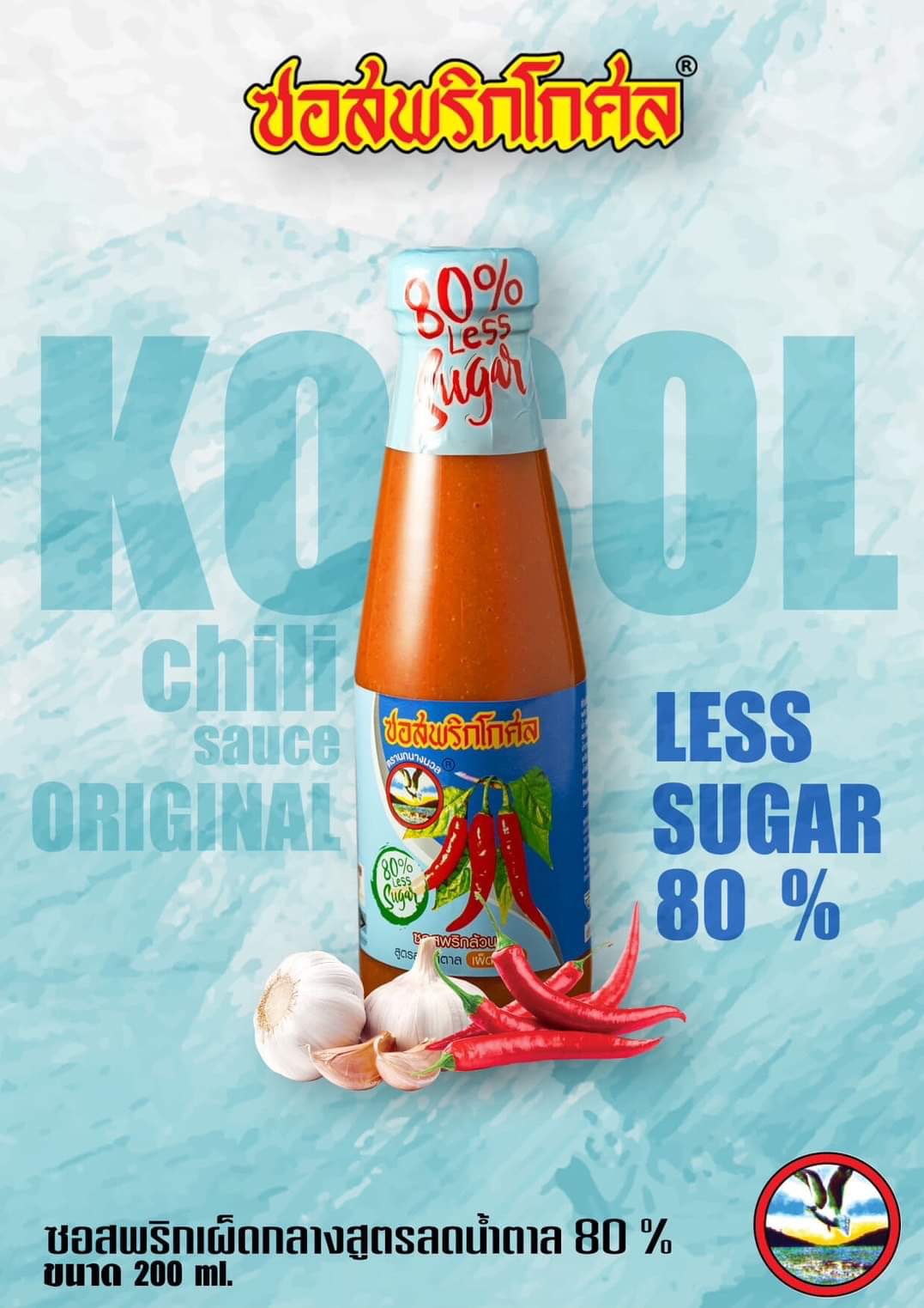 ซอสพริกโกศล สูตรลดน้ำตาล 80% (เผ็ดกลาง)